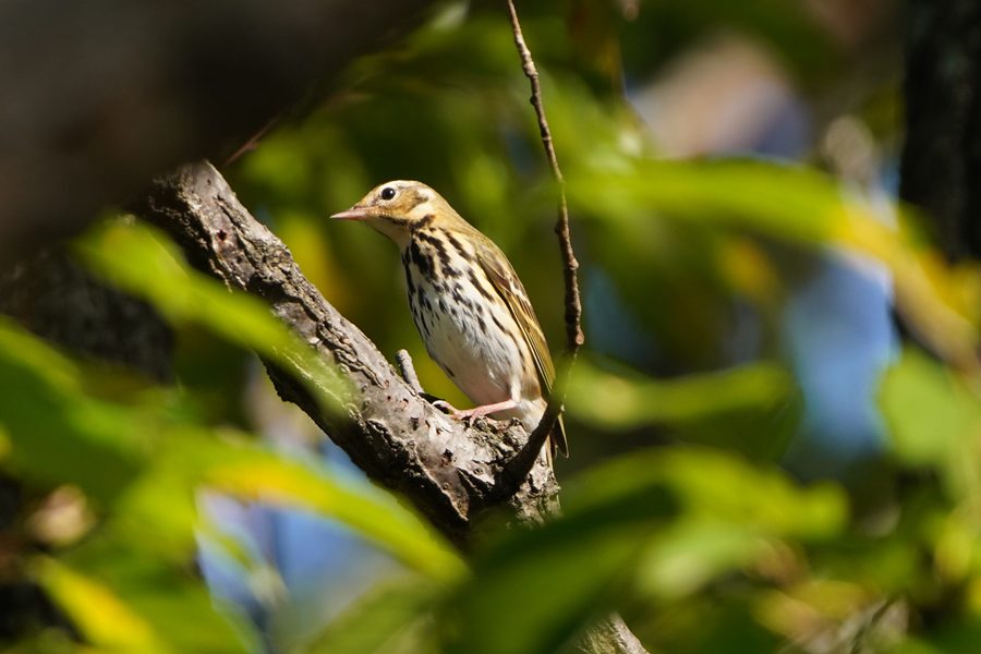 | 毎年モミジバフウの実を食べにアトリの群れが来る小さな公園に行きました。モミジバフウはまだ色づき始めたばかりで、当然アトリも見られませんでした。アトリの代わりにビンズイがいました。 |