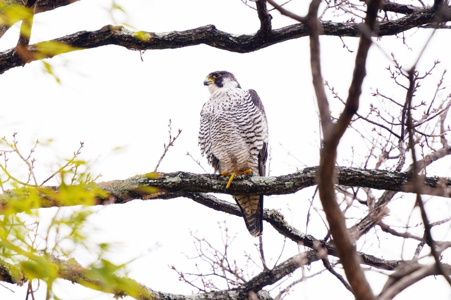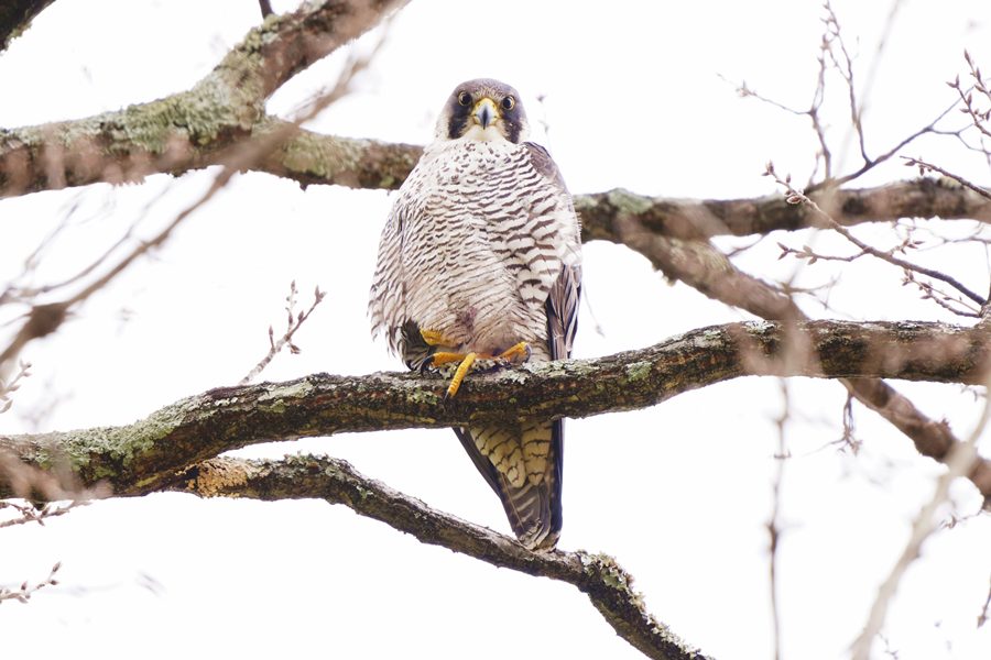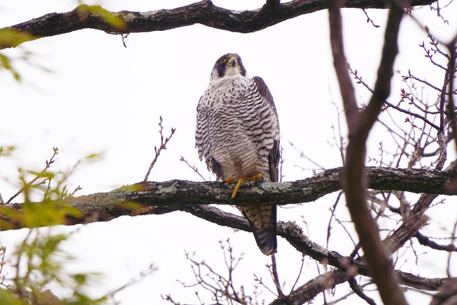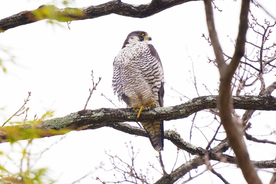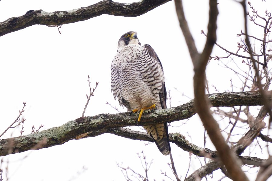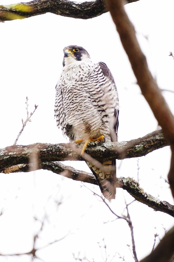 | 久しぶりのハヤブサです。ハヤブサは休憩モードで、撮った写真の半分は瞼を閉じていました。今年になって数回この大きなため池に来ているのですがハヤブサは見られませんでした。1月まではハヤブサを狙って多くのカメラマンが来ていたのですが最近はほとんど見られなくなりました。そのためハヤブサは姿を消したと思っていました。 |