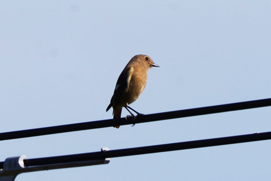 | ジョウビタキの雌もいたのですが、電線にとまっていて、下に降りてきてくれませんでした。 |