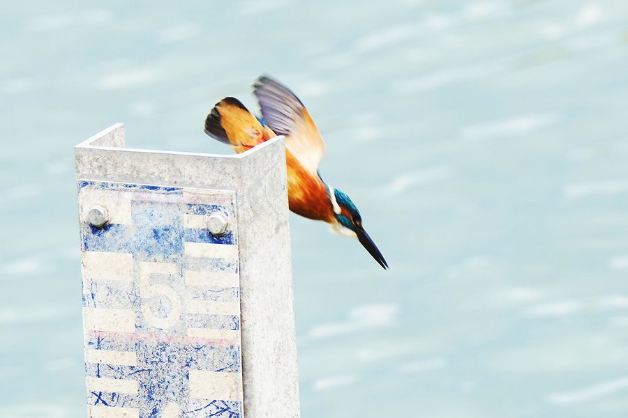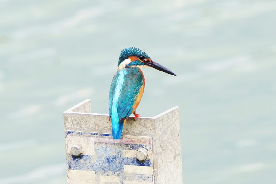 | 水位測定ゲージにとまりました。水面に飛び込むのか、水面を見つめていました。 |