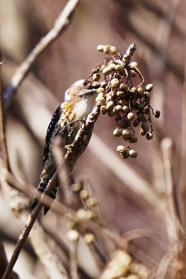 | コゲラもハゼノキの実を食べに来ていました。 |