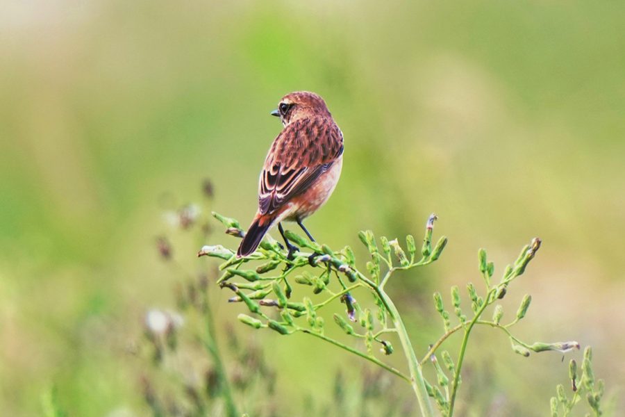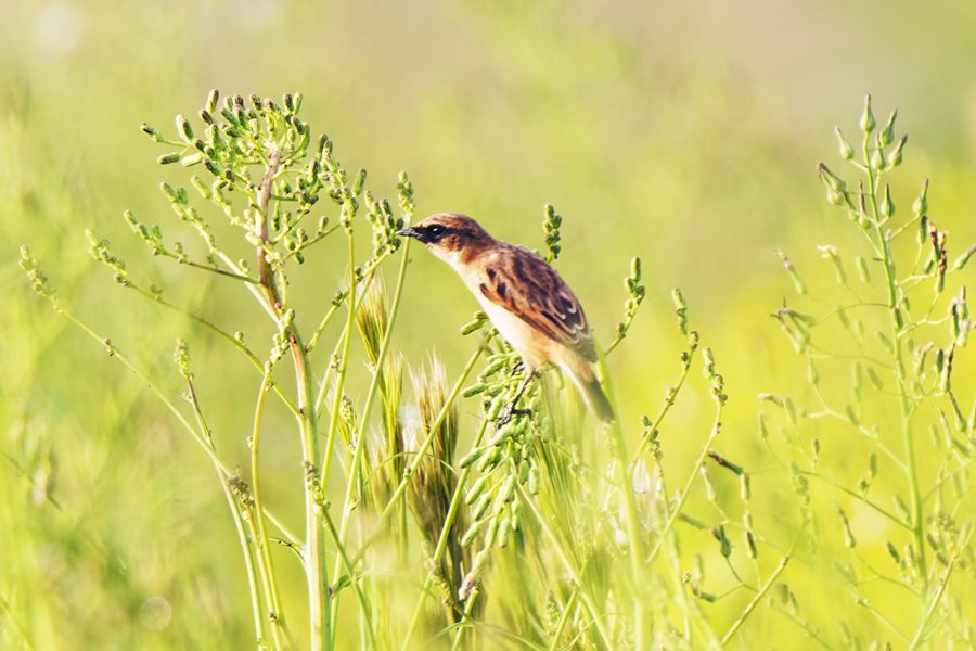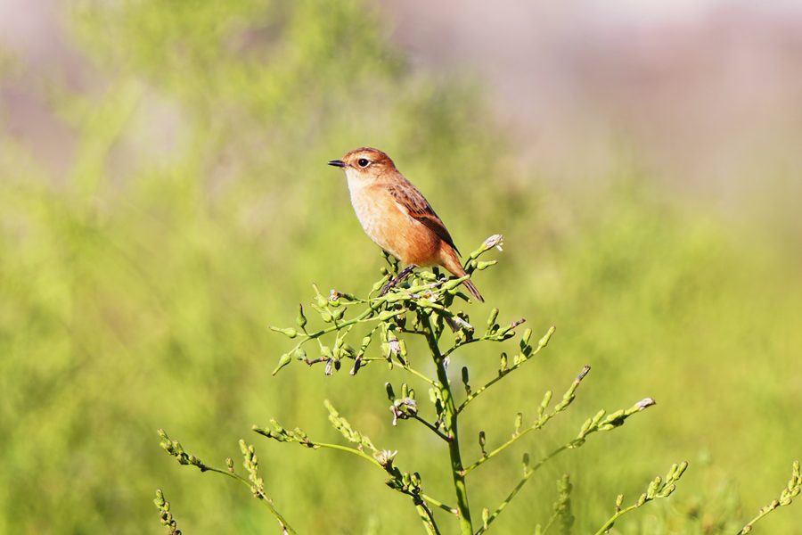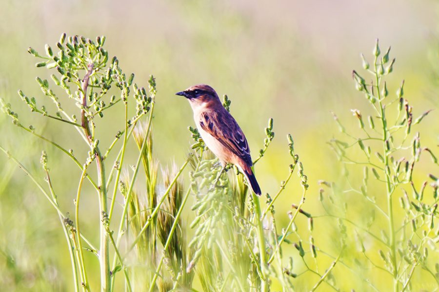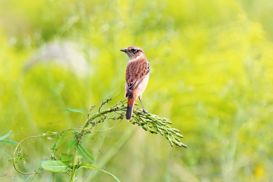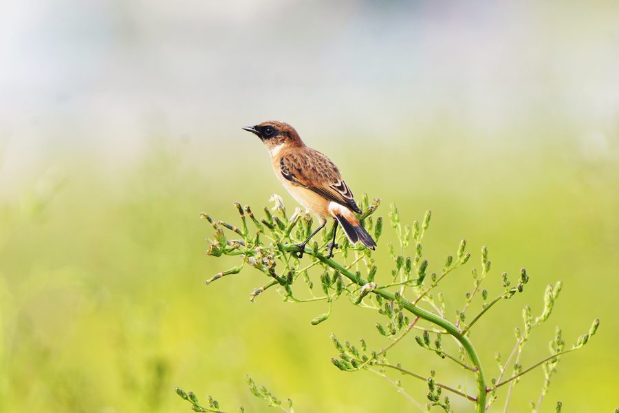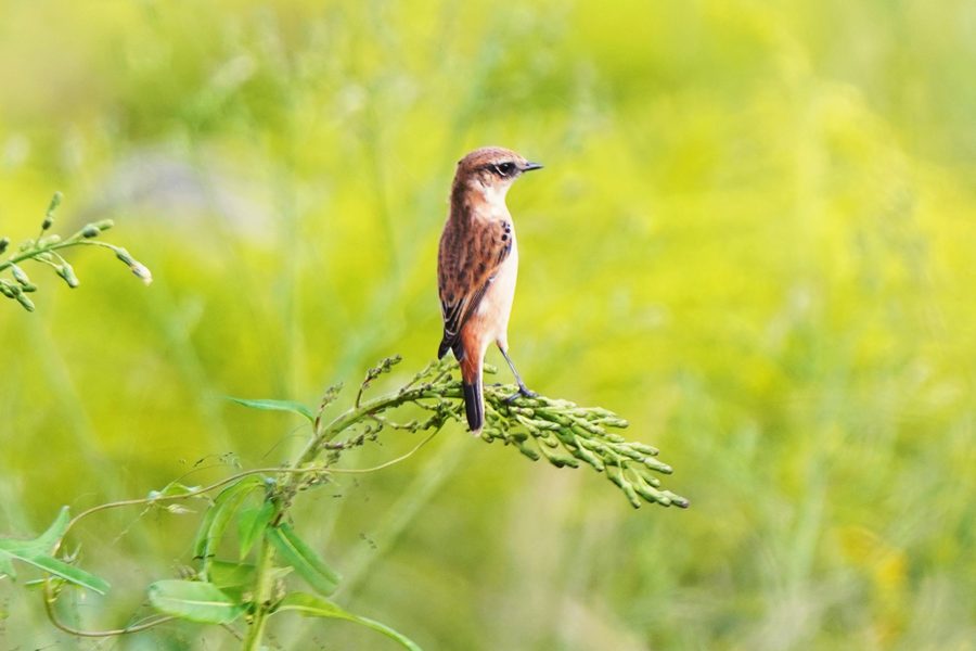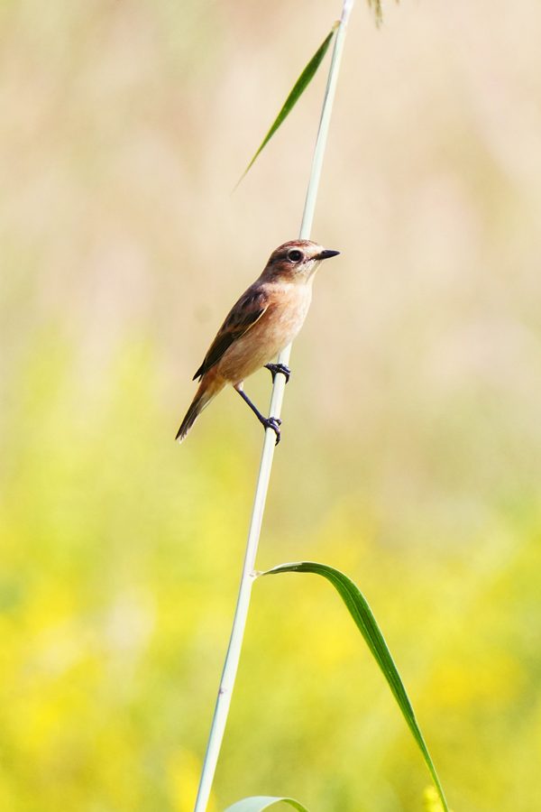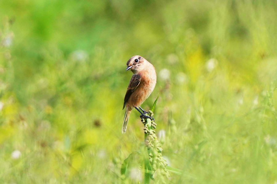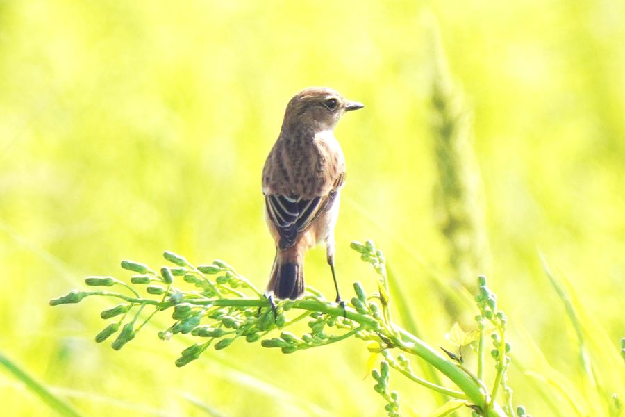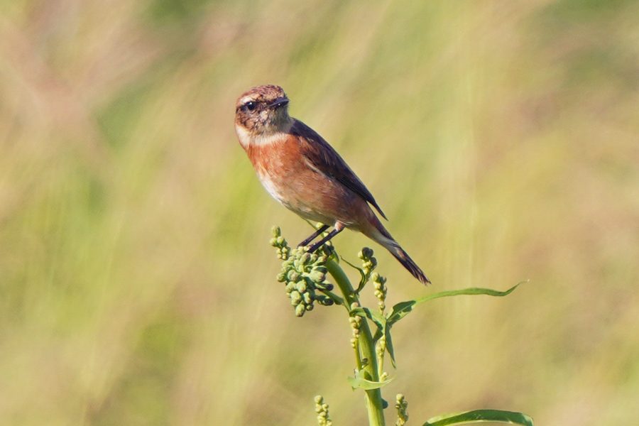 | 14日に撮影したノビタキです。この日は近くの水田地帯の広い耕作放棄地の草地でノビタキを撮影しました。 |