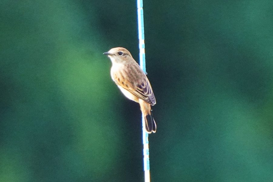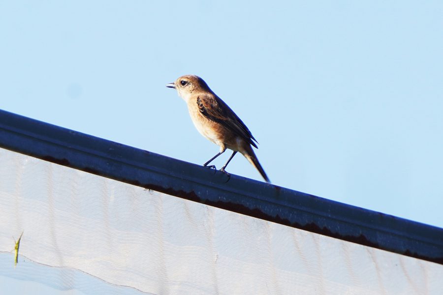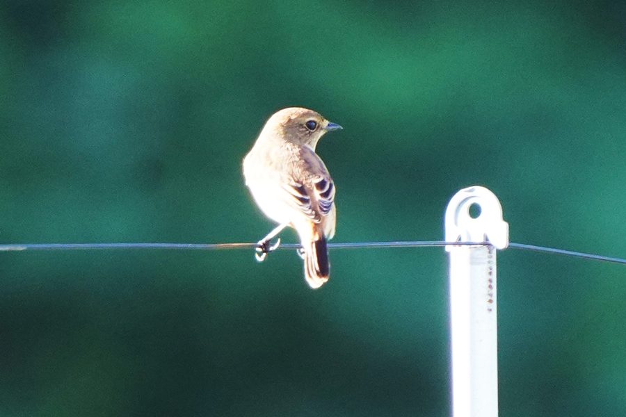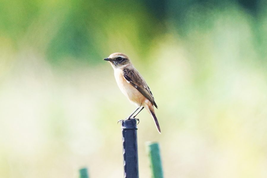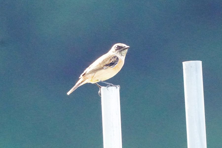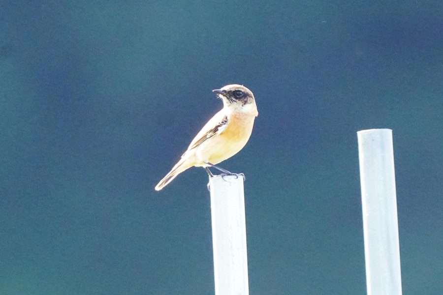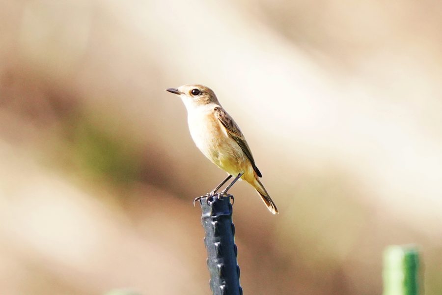 | ノビタキは広い菊畑の真ん中にいてなかなか近づいてくれません。咲いた菊の花にも止まってくれません。ポールや支柱、ワイヤーなどにとまったノビタキの写真になりました。 |