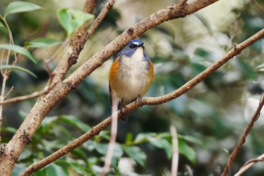 | 山の上の公園の桜園のルリビタキです。この日は少し離れた小さな木の枝にとまりました。下に降りてこず、数分この枝にいて、そのままどこかへ姿を消しました。 |