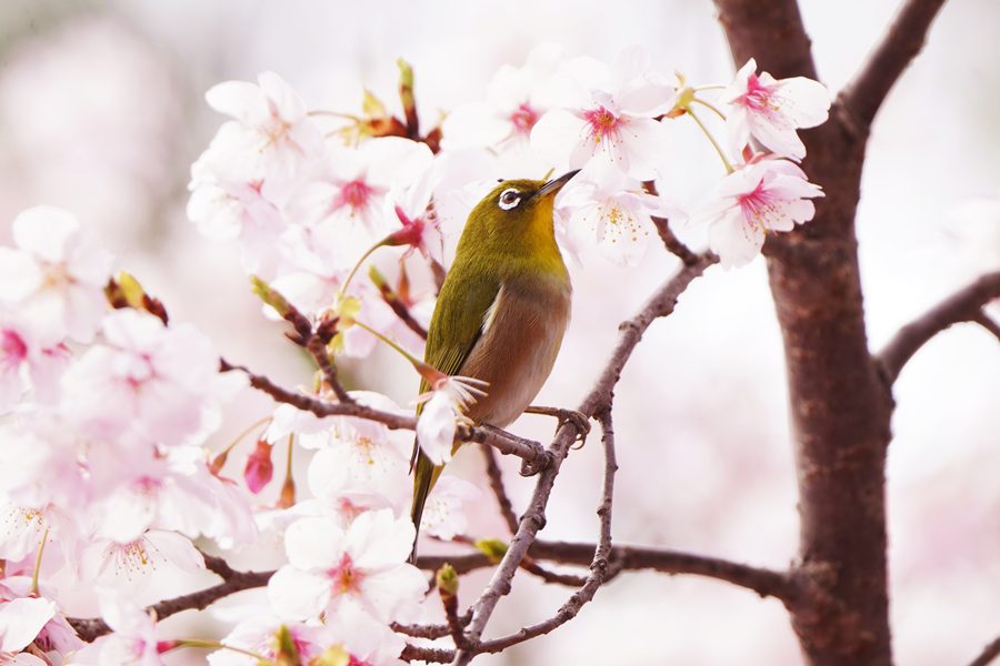 | 桜にメジロ |