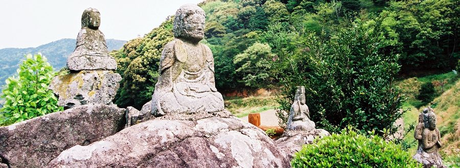 | 「全国各地の十三仏Ⅱ」は西日本の各地の石造十三仏を紹介します。「全国各地の十三仏Ⅰ」と同じく十三仏を目的で撮影したのではなく、各地の磨崖仏や石仏の撮影中に撮った十三仏で、わずか5体の紹介である。しかし十三仏信仰の最も古い石造物である岡山県の「保月六面石憧」や容像を刻んだもので最も古い刻銘「応永14(1407)年」を持つ山口市の「深谷十三仏」、「深谷十三仏」と同じく室町時代の一石一尊仏の十三仏である山口県下関市の「岩谷十三仏」など貴重な石造十三仏が含まれたページになっている。他に昭和期に造られた ふっくらとした願容のかわいらしい広島県竹原市の「黒滝山十三仏」と大阪府柏原市の「高井田十三仏板碑」を紹介する。 |