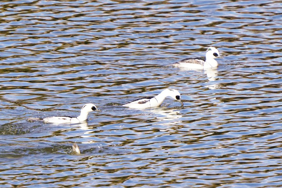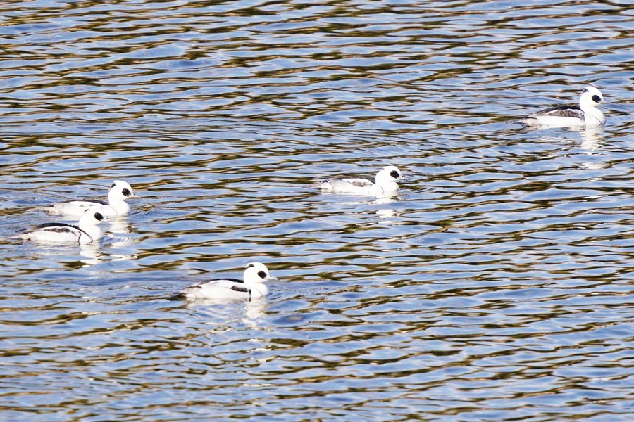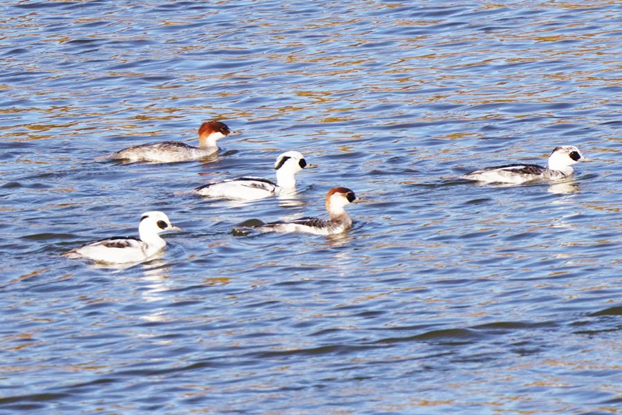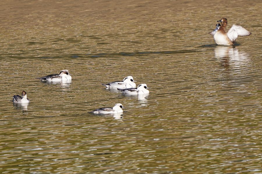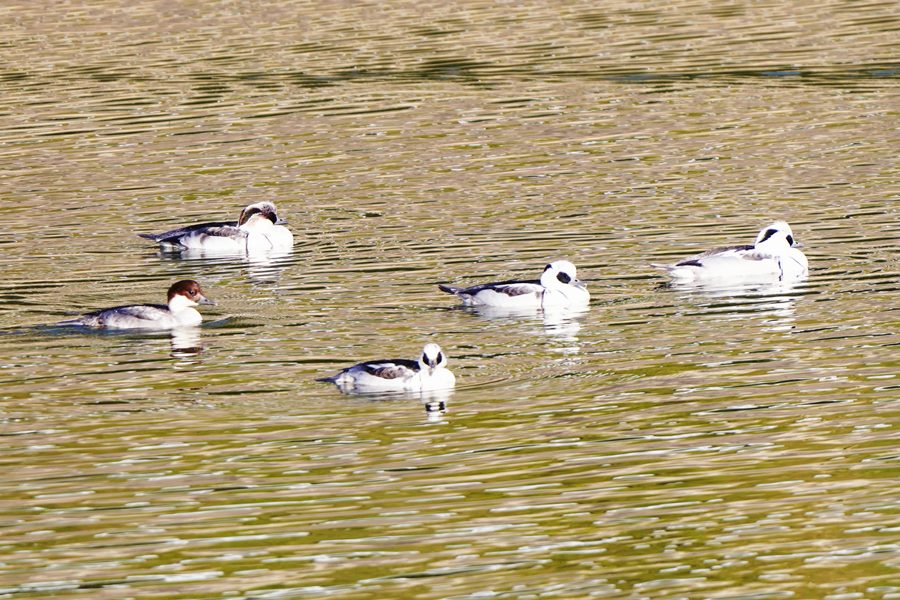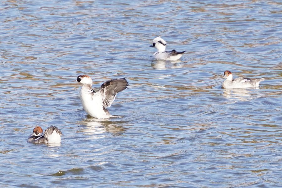 | ミコアイサは数が増えて頭部が白い雄も3羽になりました。 |