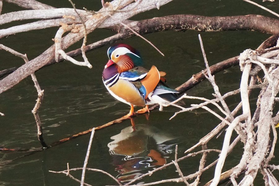 | 山の上には池が二つあり、南側にある池で撮影したオシドリです。今シーズンはこの池でオシドリはあまり見かけませんでした。 |