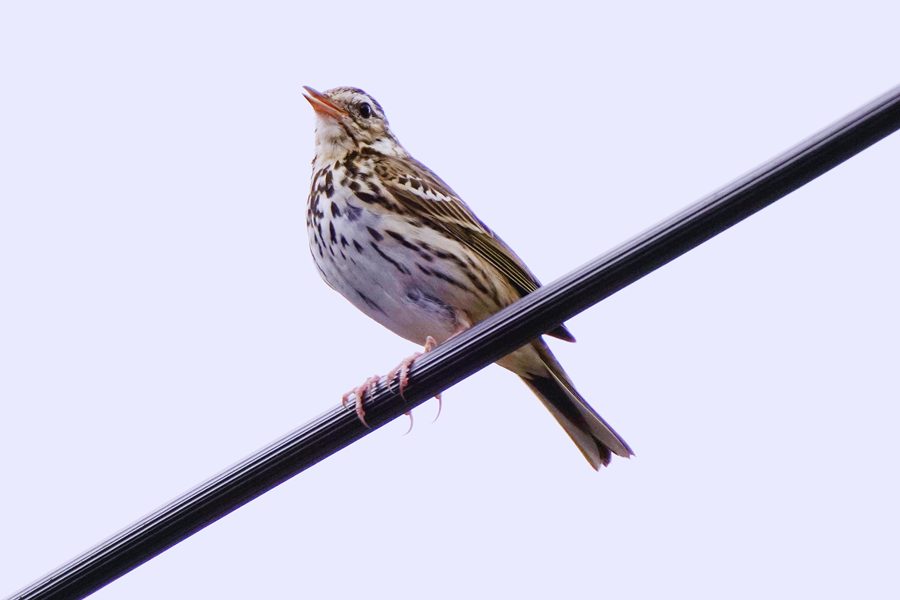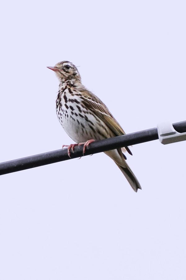| 帰りに遊水池にするため耕作が放棄された水田跡の荒れ地で上空でさえずるヒバリを撮影しました。 |