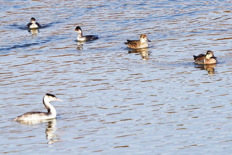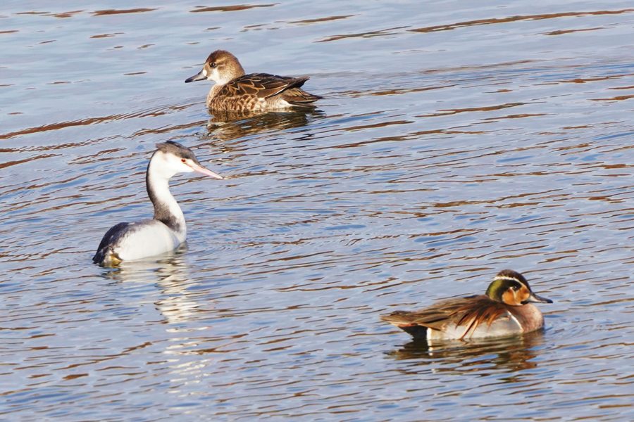 | ハジロカイツブリ・マガモ♀・カンムリカイツブリ |