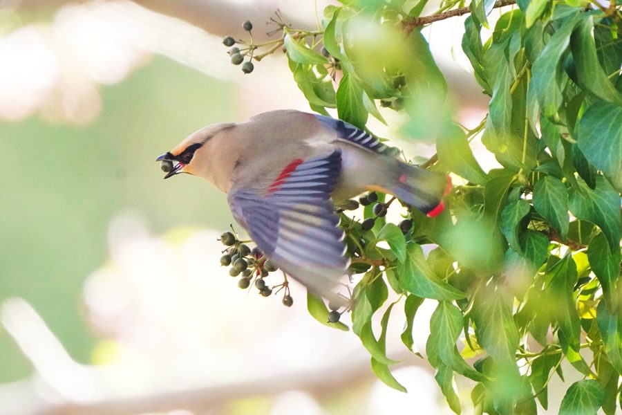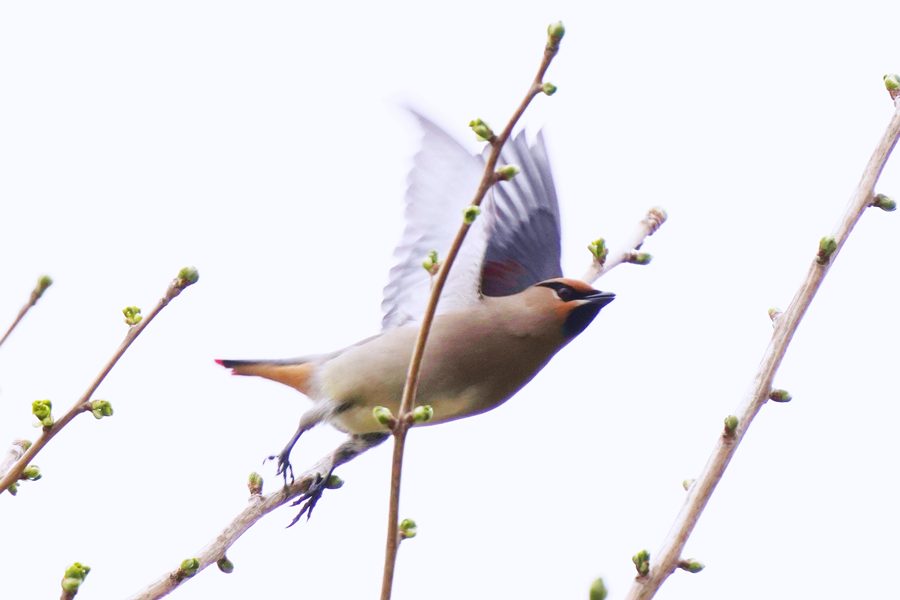 | このあと撮影していたヒレンジャクの群れは飛び去っていきました。 |