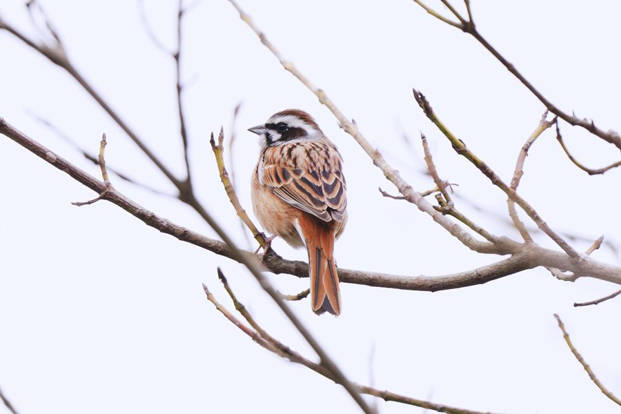 | ルリビタキを撮影しようとカメラを構えていた時、少し離れた場所で「ヒッ ヒッ」と鳥の鳴き声が聞こえてきました。最初はルリビタキの鳴き声と思ったのですが、ルリビタキにしてはやや金属的な声に聞こえたのでジョウビタキかもしれないと考えていると、「ヒッ ヒッ」の鳴き声が近づいてきて近くの林の木にとまりました。カメラを向けてみるとジョウビタキでした。 |