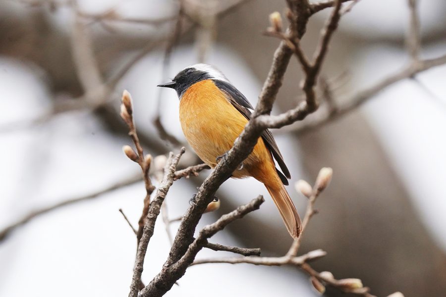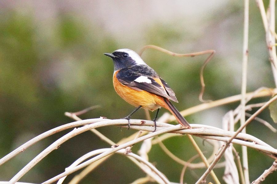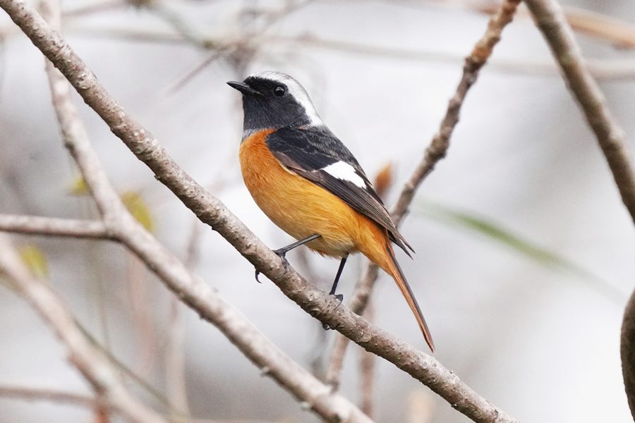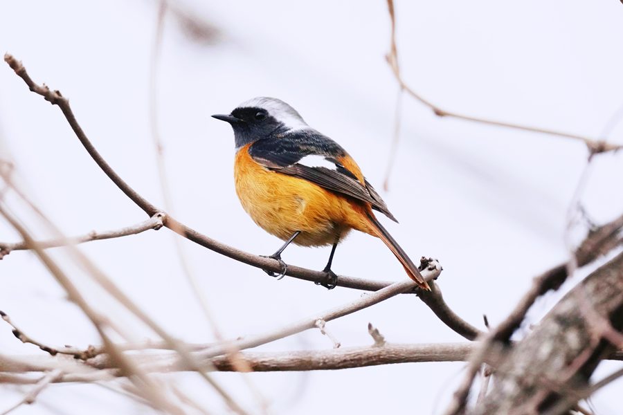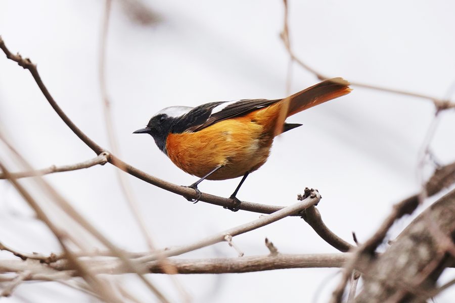 | 池畔の林にジョウビタキがいました。木から木へ飛び移り楽しませてくれました。 |