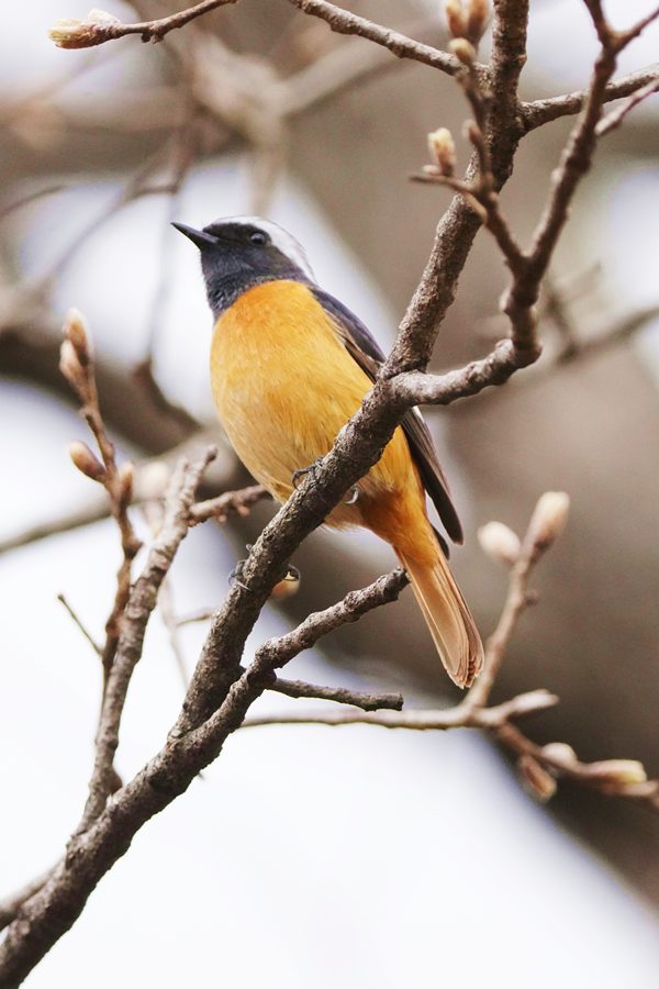 | ルリビタキ♂を狙って待っていたのですが姿が見られませんでした。もう高い山に行ってしまったのかもしれません。ルリビタキ♀はまだいるようで桜の木にとまりました。 |