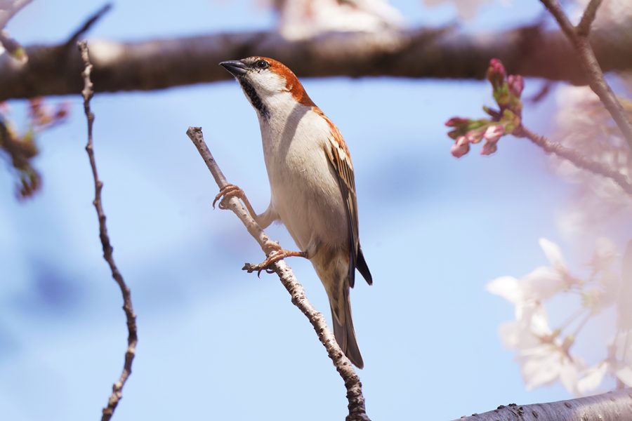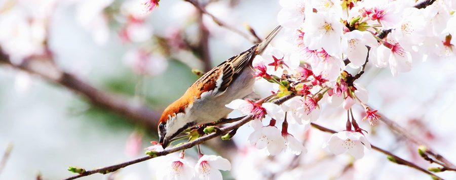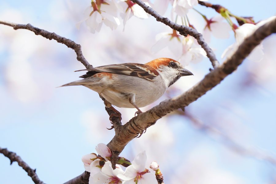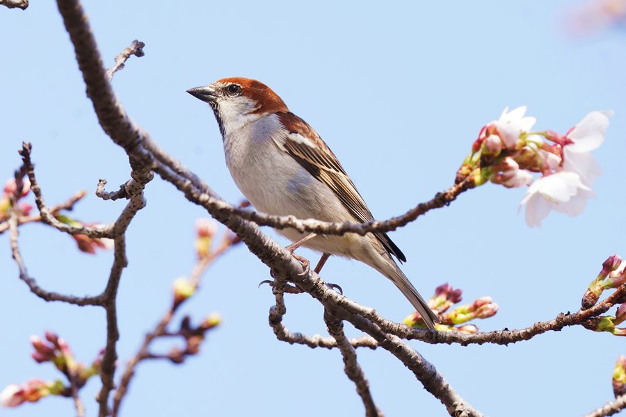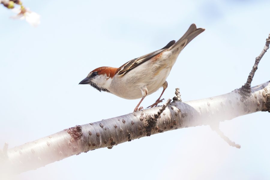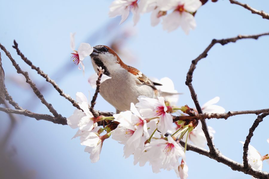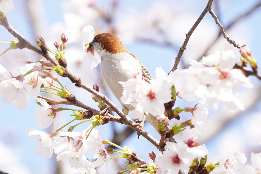 | 桜のラッパを吹くニュウナイスズメの姿を何回か見たのですが、なかなかうまく撮影できませんでした。 |