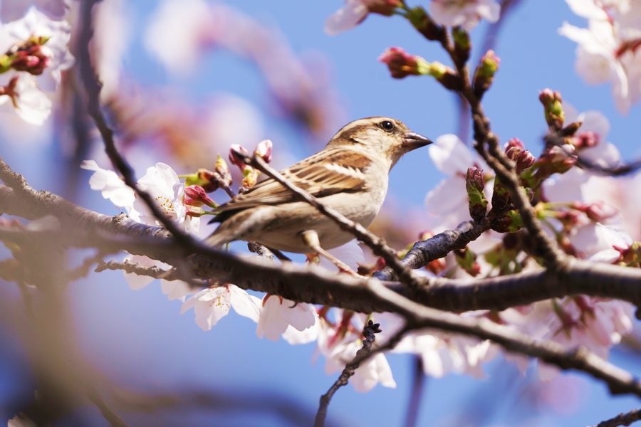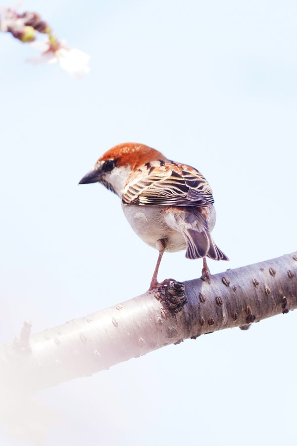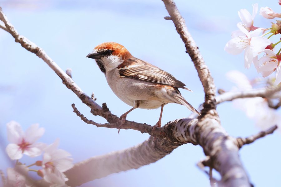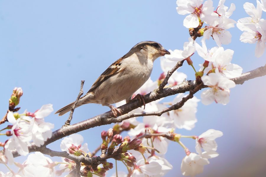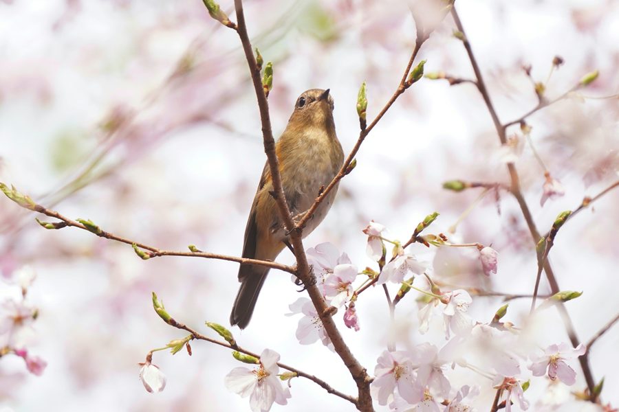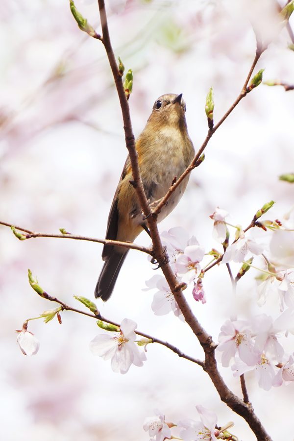 | 桜のラッパを吹くニュウナイスズメの姿を何回か見たのですが、なかなかうまく撮影できませんでした。 |