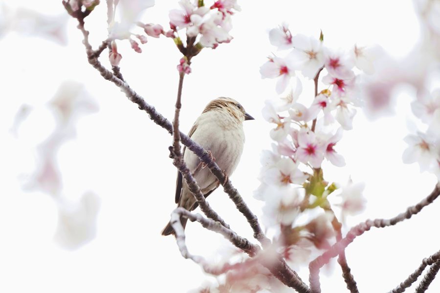 | 隣町の川の岸辺の桜が満開に近づいていました。毎年、ここでニュウナイスズメを撮影しています。今年も3羽のニュウナイスズメがいました。 |