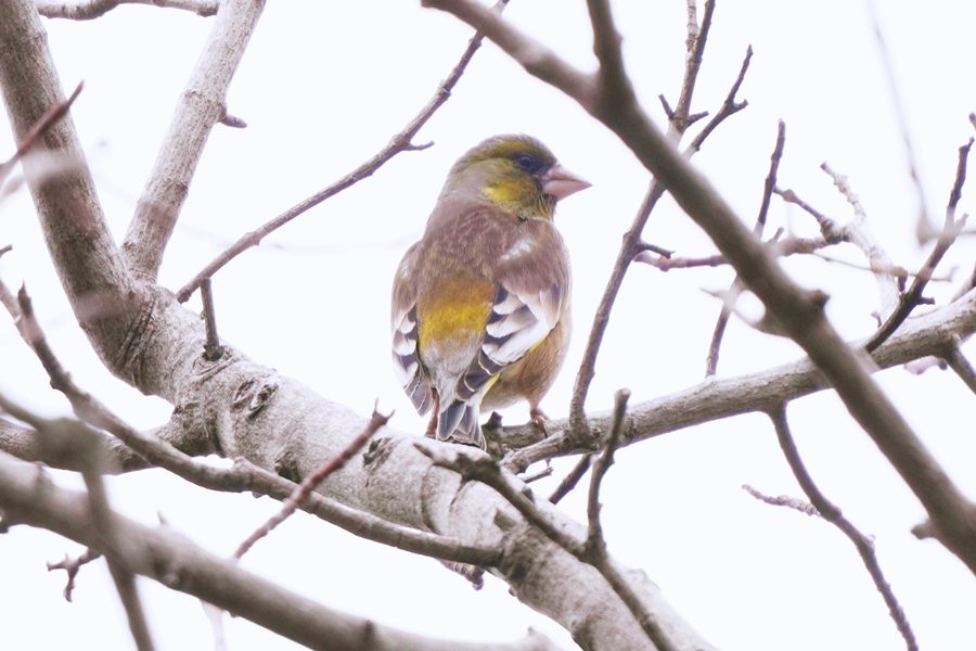 | この日も隣町の山中のハイキングコースのハゼノキにとまるルリビタキ♀を撮影に行きました。20分ほどまってルリビタキ♀がハゼノキに飛んできたのですが撮った写真はすべて枝被りでした。撮影できたのがオオカワラヒワとホオジロでした。 |