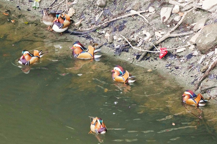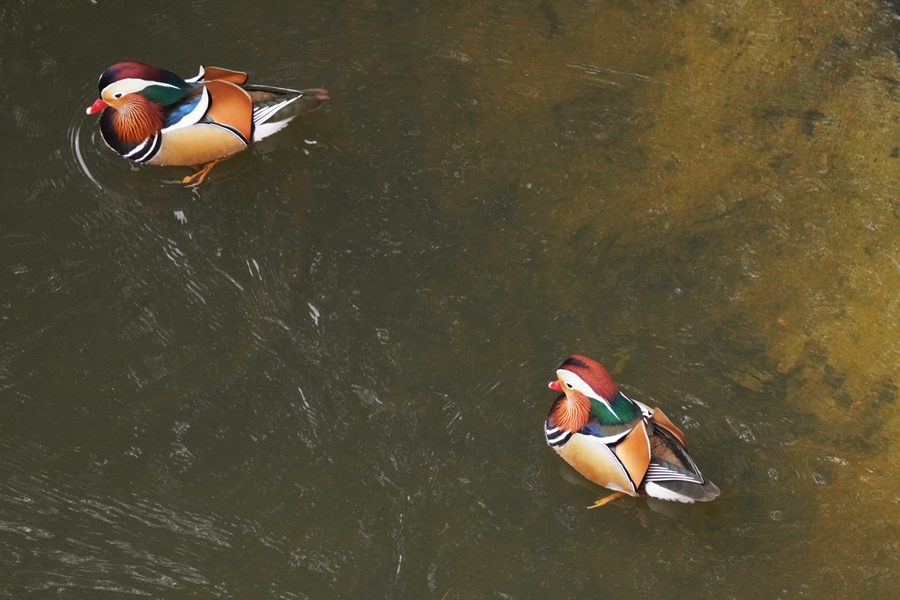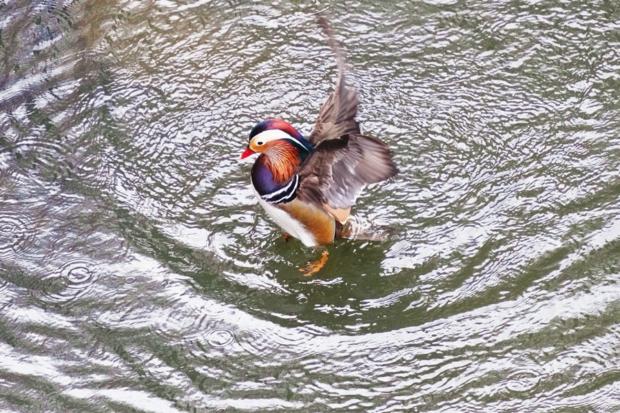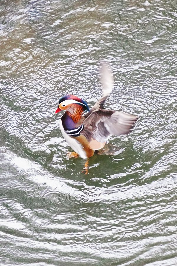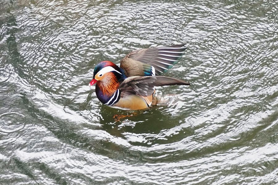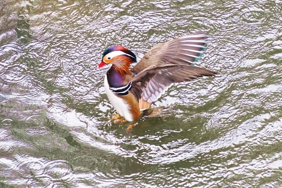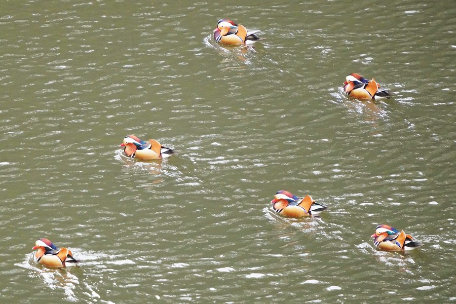 | オシドリ | この日は冬の間この池に見られたトモエガモは北方へ旅立ったのかもしれません。したがって久しぶりにオシドリのみの撮影になりました。 |