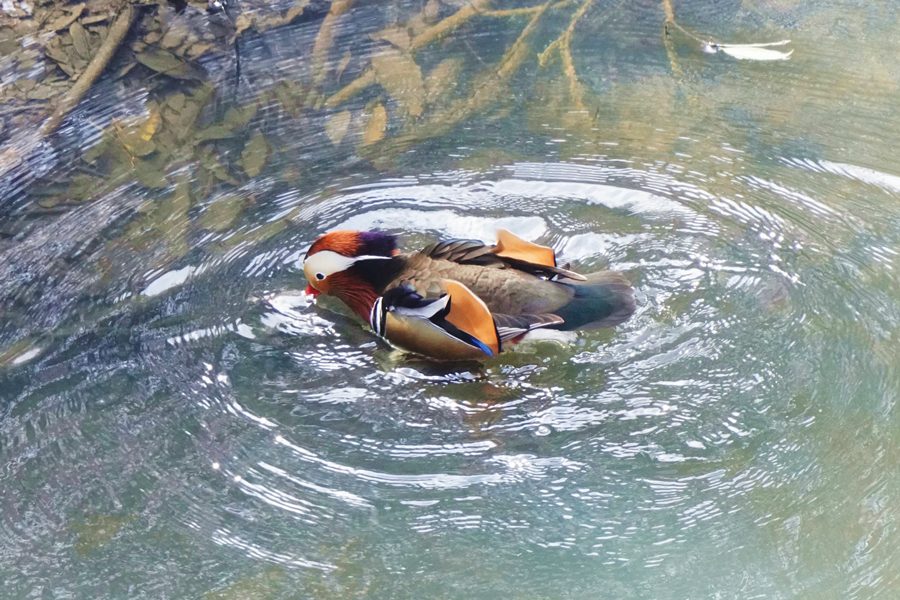 | 羽ばたくオシドリ |