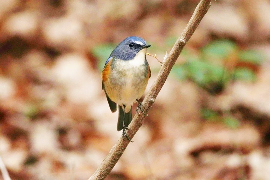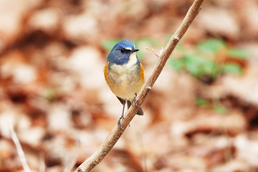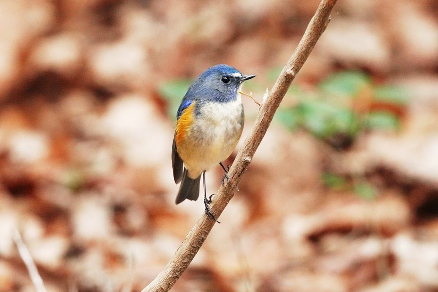 | 山の上の公園の桜園のルリビタキです。この日は少し離れた小さな木の枝にとまりました。下に降りてこず、数分この枝にいて、そのままどこかへ姿を消しました。 |