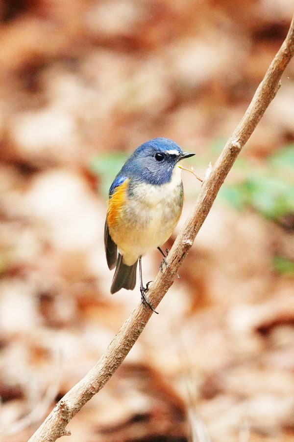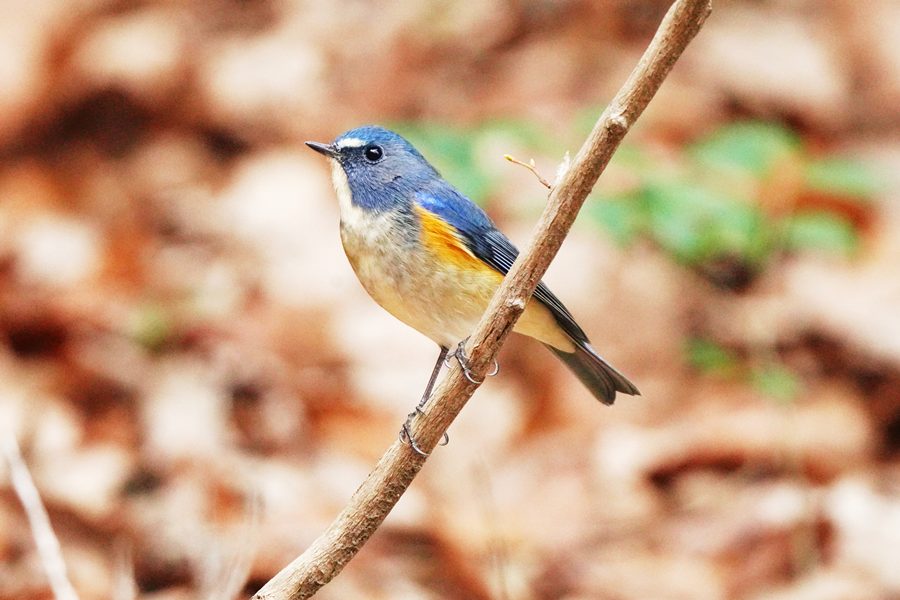 | 昨日、アップしたルリビタキの続きです。ルリビタキは木の枝から飛び降り近くに来てくれました。 |