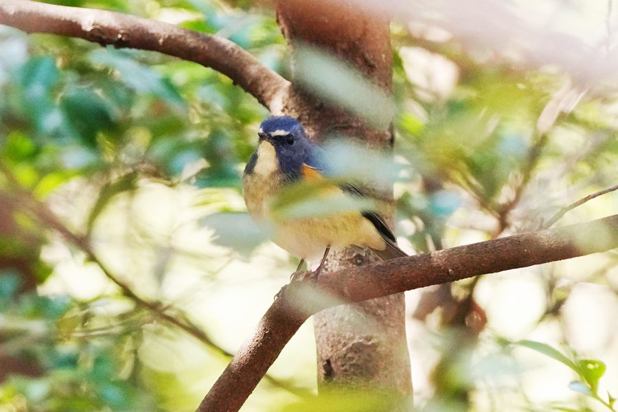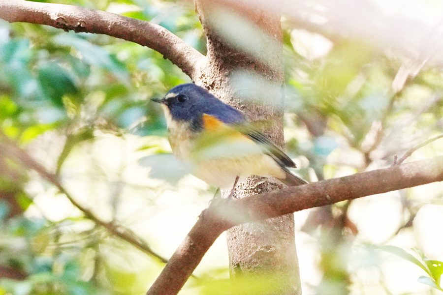 | この日はルリビタキは少し離れた木にとまっていて近くに来てくれません。 |