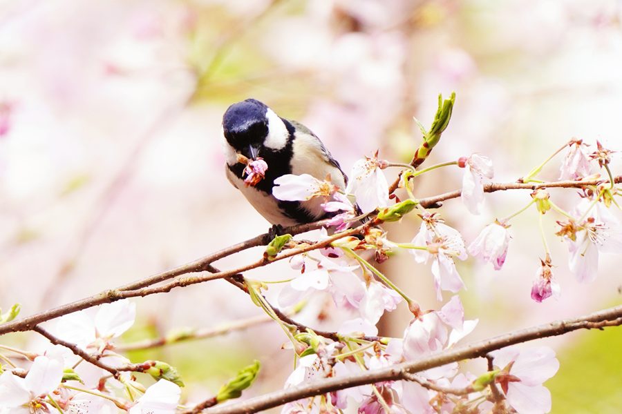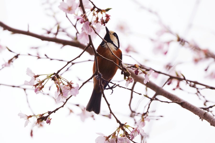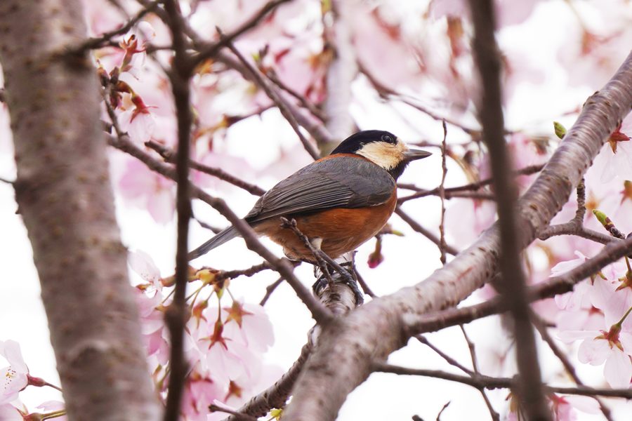 | 桜にとまるヤマガラは毎年この桜園で見られます。 |