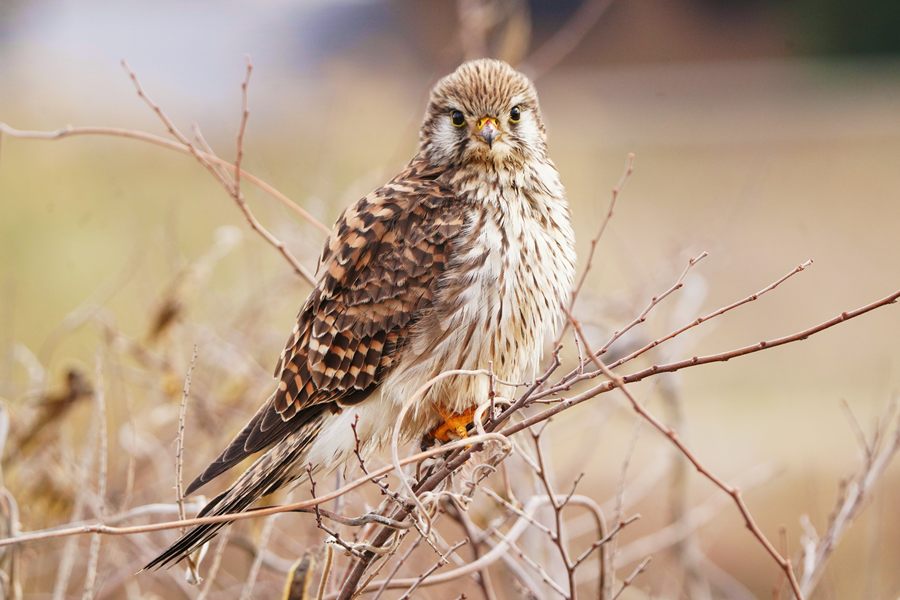 | 久しぶりに近くの川の河川敷を歩きました。川のほとりの雑木にチョウゲンボウがいました。 |