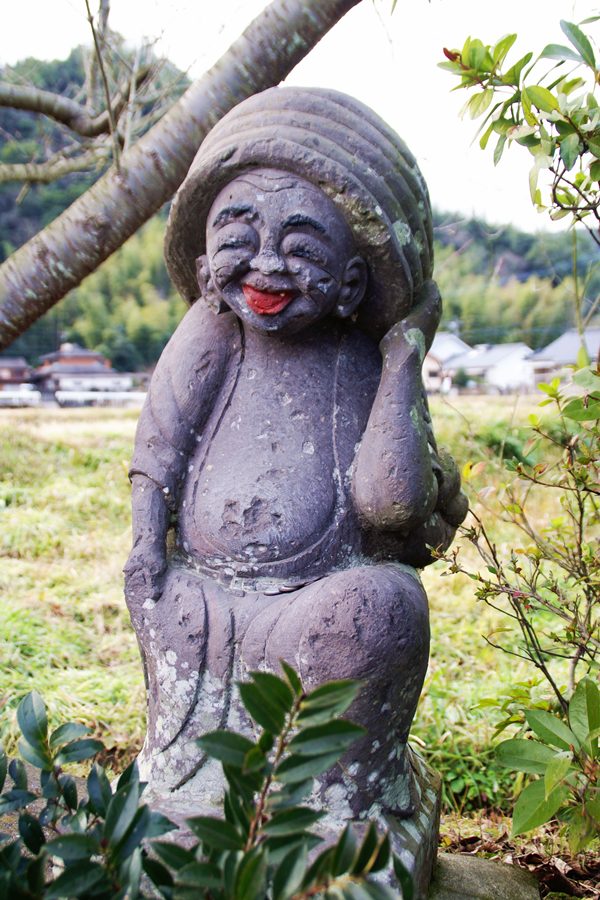 | 鹿児島県の姶良市加治木町日木山里に昭和59年の東京での「ほほえみの石仏展」に出品され、話題になった田の神がある。頭に甑のシキを被り、右手にメシゲを持ち、左手でシキを押さえて、笑みを浮かべて中腰で田の舞を踊っている姿の像高82㎝の田の神像で、何回も石仏写真展等で紹介されている。土地の人の伝承では、加治木の石工、名島喜六が彫ったという。制作年代については天保年間説と明治初頭説がある。 |