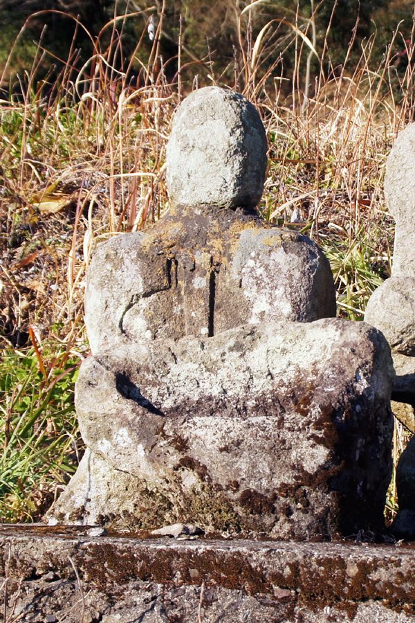 | 「大隅の田の神さあ5」では庶民的な笑顔の丸顔で右手でメシゲを立てて持ち、左手で椀を持った中腰の「早鈴神社西の田の神」「埒上の田の神」「森ノ木の田の神」を紹介したが、これらの像はこの地方でよくみられる江戸時代の田の神像の様式を受け継ぎ洗練した昭和期の田の神である。それに対してこの「大隅の田の神さあ6」では伝統を引き継ぎながらも近代彫刻の影響を受けた個性的な田の神像を3体紹介する。そのうち丸顔で庶民的な笑顔がすばらしい「口輪野の田の神」と「鎮守尾橋の田の神」は地元の石工の田畑喜蔵の作で「口輪野の田の神」に「昭和七年」の刻銘がある。「剣之宇都の田の神」は作者はわからないが写実的な穏やかな顔の像で「昭和十一年」の刻銘がある。 他に国分地区の田の神として明治時代の素朴で可愛らしい「上之段の田の神」と弘化4(1847)年の新田開拓時に作られた「小村新田の田の神」を紹介する。国分地区と隼人地区以外にも優れた田の神像ややユニークな田の神があるが、横川地区の正保元年(1644)という田の神像の中で最も古い紀年銘が見つかり話題となった神官型座像の「紫尾田の田の神」以外撮影できていない。 |